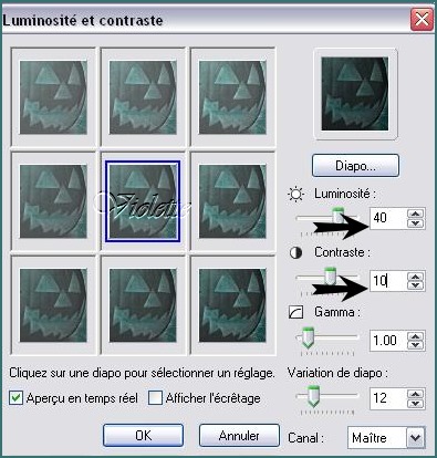 5 - Photo/Lumière/Luminosité et Contaste : Luminosité : 40/ Contraste : 10