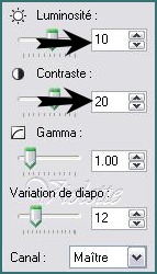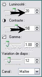 ** Photo/Lumière/Luminosité et Contaste : Luminosité : 20/ Contraste : 50