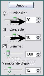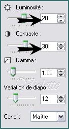 ** Photo/Lumière/Luminosité et Contaste : Luminosité : 20/ Contraste : 30