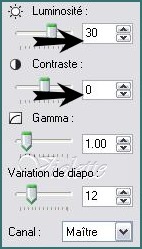 ** Photo/Lumière/Luminosité et Contaste : Luminosité : 30/ Contraste : 0