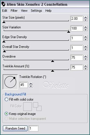 4 - Se placer sur le cadre 2 Sélection/Charger la sélection Effets/Xenofex 2/Constellation: clic sur "Random"