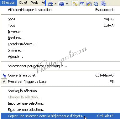 Sélection/Copier une sélection dans la Bibliothèque d'objets: