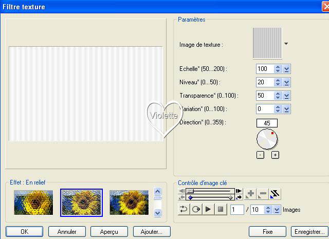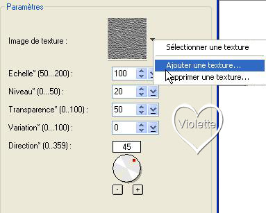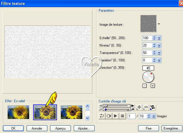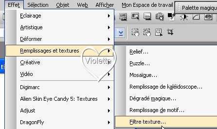 Effets/ Remplissage et Textures/ Filtre Texture: