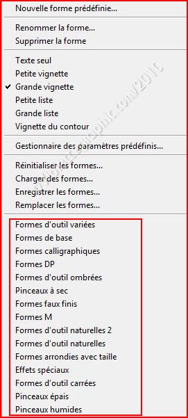 sont inscrits tous les pinceaux installés dans le logiciel