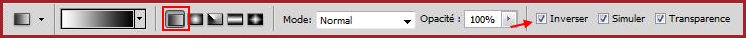 dégradé linéaire/Mode: Normal/Opacité: 100%/ inverser coché