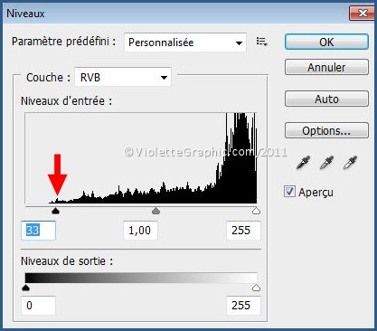 Filtre/Atténuation/Flou directionnel réglages suivants :