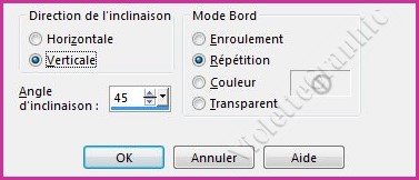 5 - Effets/Effets géométriques/ inclinaison réglages suivants :