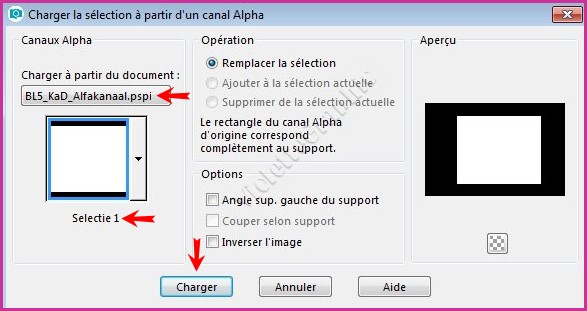 8 - Sélection/Charger/Enregistrer une sélection/charger à partir Canal Alpha Charger la sélection 1: