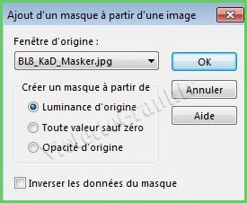** Activer le masque BL8_KaD_Masker.jpg Calques/Nouveau calque de masque/à partir d'une image/Ajout d'un masque à partir d'une image sélectionner le masque BL8_KaD_Masker.jpg