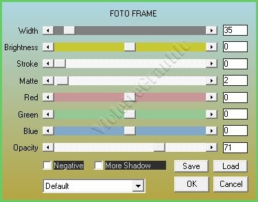21 - Fermer le calque supérieur Calques/Fusionner les calques visibles **Effets/AAA Frame/Foto frame réglages suivants :