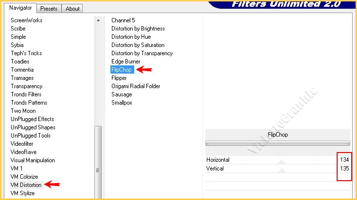 3 - Effets/ VM Distorsion / Flip Chop réglages suivants :