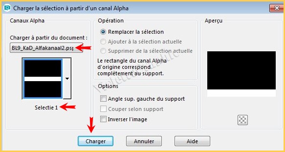 9 - Activer le calque inférieur ** Sélection/Charger/Enregistrer une sélection/charger à partir Canal Alpha Charger la sélection 1 :