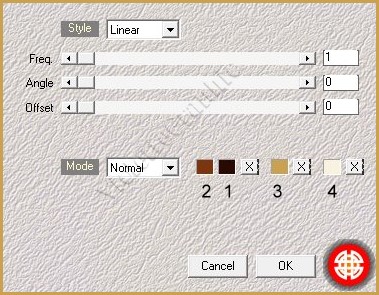 Remplir de couleur arrière-plan **Effets/ Effets de texture/ Stores réglages suivants: