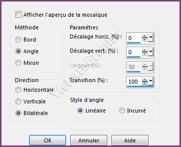 3 - Effets/Effets d'image/Mosaïque sans jointure réglages suivants :