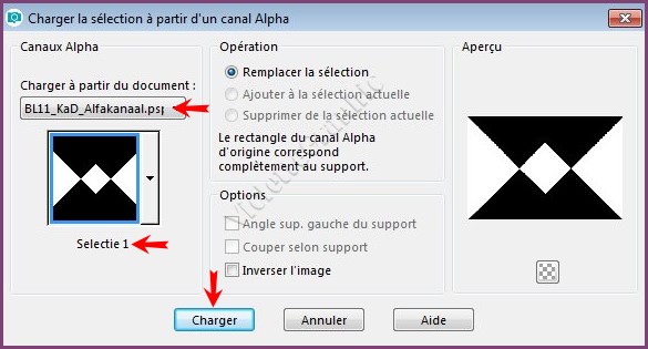 6 - Sélection/Charger/Enregistrer une sélection/charger à partir Canal Alpha Charger la sélection 1