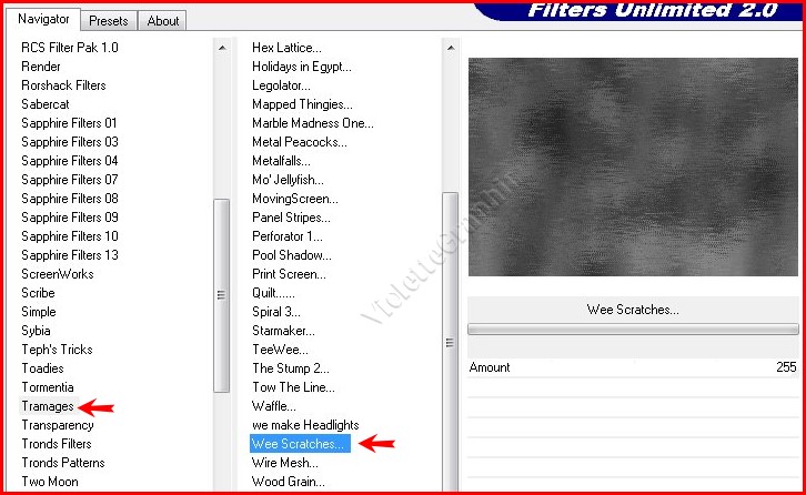 3 - Effets/ Unlimited 2.0 / Tramages/Wee Scratches réglages ci-dessous :