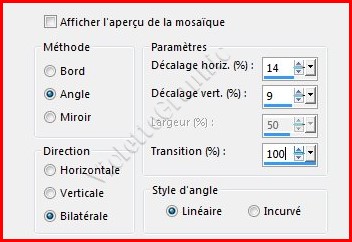 18 - Effets/Effets d'image/Mosaïque sans jointure réglages suivants :