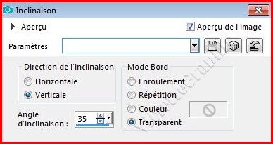 **Effets/ Effets géométriques/ Inclinaison réglages suivants :