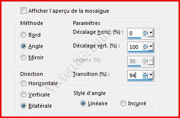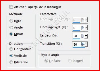 5 - Effets/Effets d'image/Mosaïque sans jointure réglages suivants :