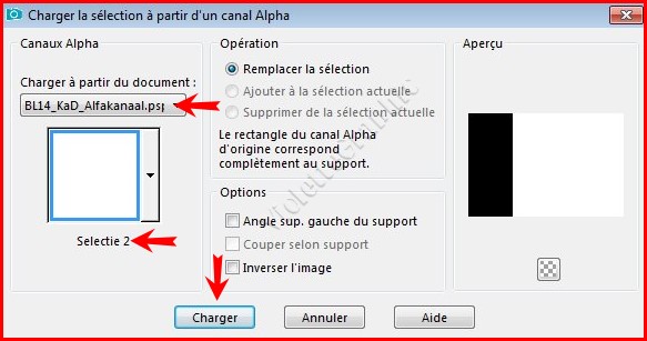 15 - Calques/Nouveau calque ** Sélection/Charger/Enregistrer une sélection/charger à partir Canal AlphaCharger la sélection 2