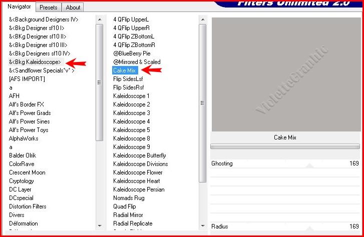 **Effets/ Unlimited 2.0 /& <Kaleidoscope BKG>/ Cake Mix réglages suivants : Cet effet dépend fortement de la couleur que vous utilisez Si vous ne remarquez rien, essayez avec une couleur plus claire.