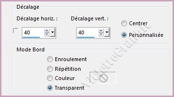12 - Calques/Dupliquer ( copie de calque 2 ) Effets/Effets d'image/Décalage réglages suivants :