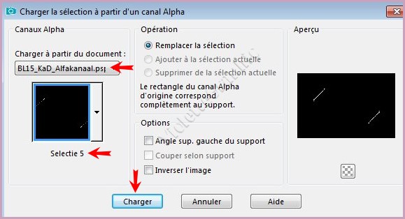 14 - Activer le calque supérieur **Sélection/Charger/Enregistrer une sélection/charger à partir Canal Alpha Charger la sélection 5