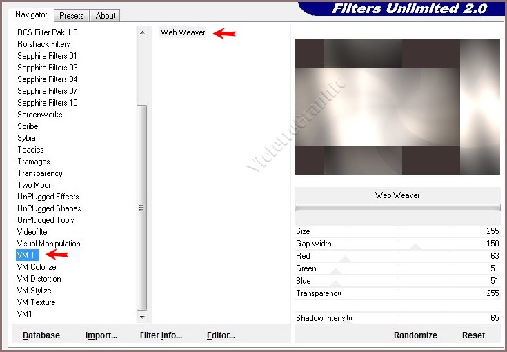 6 - Effets / Unlimited 2.0/ VM1/ Web Weaver réglages suivants: