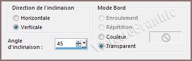 27 - Effets/Effets Géométriques/Inclinaison réglages suivants :