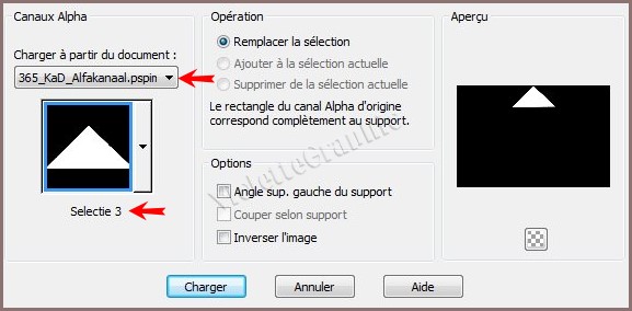 30- Activer le calque intermédiaires ( copie de calque 1 ) Sélection/Charger/Enregistrer une sélection/charger à partir Canal Alpha Charger la sélection 3
