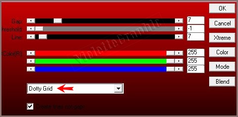 31 - Sélection/Transformer la sélection en calque **Calques/Réorganiser/Placer en haut de la pile **Effets /AP - Innovations Silverlining / Dotty Grid réglages suivants :