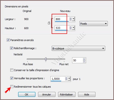 42 - Image/Redimensionner : 800 x 533 pixels/ décocher " Redimensionner tous les calques"