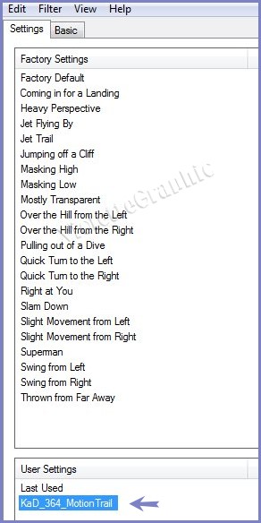 25 - Effets / Alien Skin / EyeCandy5 / Motion Trail Appliquer le preset KaD_364_MotionTrail.Lfs