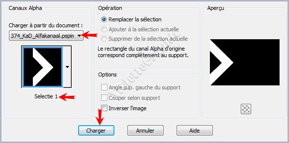 6 - Activer le calque inférieur **Sélection/Charger/Enregistrer une sélection/charger à partir Canal Alpha Charger la sélection 1