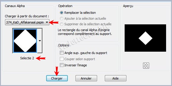 12 - Activer le calque 1 **Sélection/Charger/Enregistrer une sélection/charger à partir Canal Alpha Charger la sélection 2