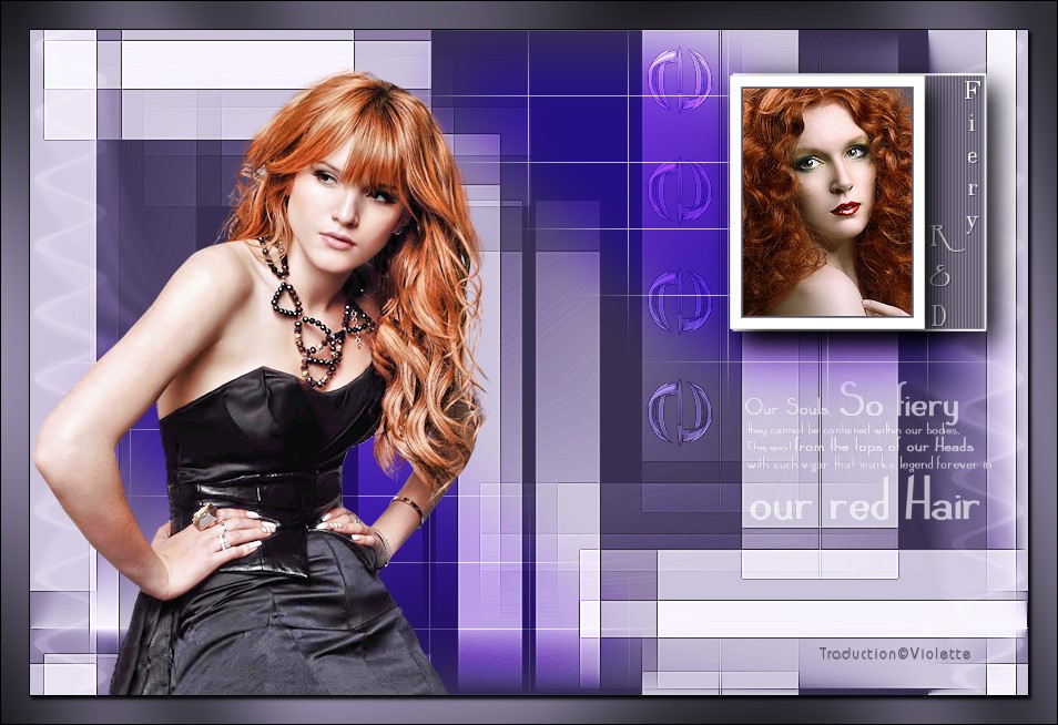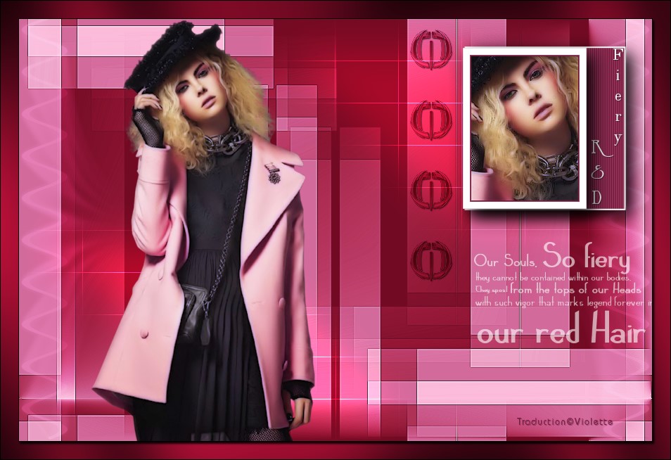 Merci beaucoup à Karin de m'avoir donné l'exclusivité de la traduction française de ses tutoriels*** *** Ces traductions m'appartiennent Il est strictement interdit de les copier ou de les distribuer sur le Net Les tutoriels sont la propriété de leurs auteurs *** 375 - Fiery Redhead vous trouverez l'original de ce tutoriel ICI *** Ce tutoriel a été réalisé dans PSP X8 mais peut être effectué dans les autres versions PSP Ces traductions m'appartiennent Il est strictement interdit de les copier ou de les distribuer sur le Net *** Pour faire ce tutoriel vous aurez besoin : Tubes : 2160 - red hair - LB TUBES.pspimage 1327-Femme-Azalee 375_KaD_Text1 375_KaD_Text2 sélection : 375_KaD_Alfakanaal.pspImage Preset : 375_KaD_MotionTrail Preset : 375_FlamingPear_Flood *** Filtres : ICI Unlimited 2.0 : &<Bkg Designer / sf10I> – Cruncher Alien Skin / EyeCandy 5 Impact Tramages / Tow the Line / Pool Shadow Richard Rosenman / Grid Generator Graphics Plus / Cross Shadow