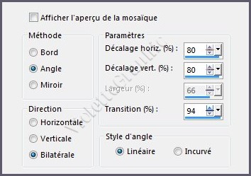 6 - Effets/Effets d'image/Mosaïque sans jointure réglages suivants :