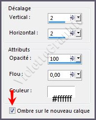 23 - sur le calque de l'ombre ** Effets/Effets 3D/Ombre Portée : -4/0/100/0/couleur #ffffff