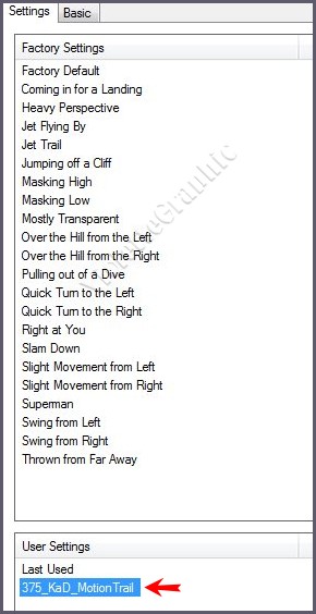 30 - Effets/Alien Skin / Eye Candy 5 Impact / Motion Trail Appliquer le preset : 375-KaD_Motion Trail