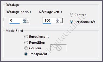 46 - Calques/Dupliquer Effets/Effets d'image/Décalage réglages suivants :