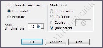 56 - Effets/Effets Géométriques/Inclinaison réglages suivants :