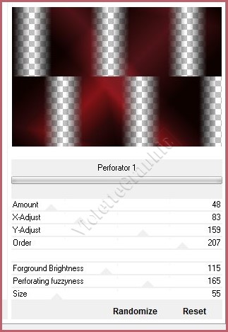 5 - Calques/Dupliquer Effets/Unlimited /Filter Factory Gallery E /Perforator 1 réglages suivants :