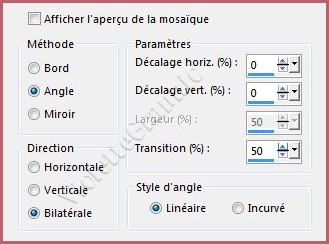 9 - Effets/Effets d'image/Mosaïque sans jointure réglages suivants: