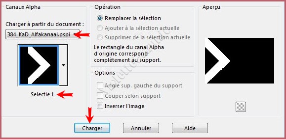 10 - Activer le calque inférieur **Sélection/Charger/Enregistrer une sélection/charger à partir Canal Alpha Charger la sélection 1
