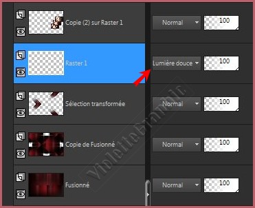 31 - Effets/Effets d'image/Décalage réglages suivants : Horiz.= 216 / Vert.= 0/ Transparent Mode de fusion: Lumière douce