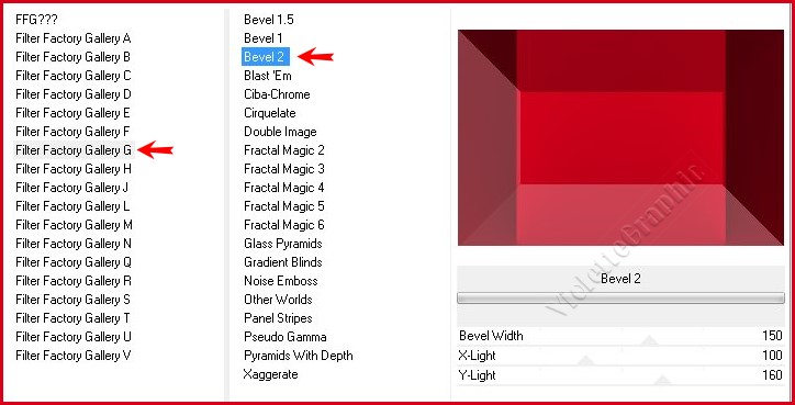 3 -Effets/Unlimited /Filter Factory Gallery G /Bevel 2 réglages suivants :