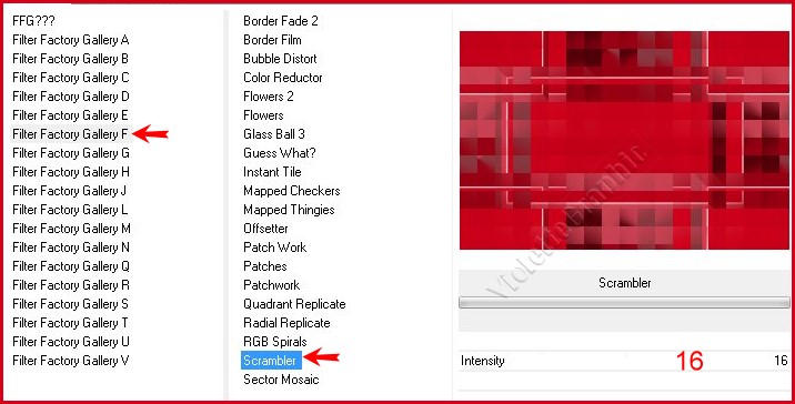 10 - Calques/Dupliquer **Effets/Unlimited /Filter Factory Gallery F /scrambler réglages suivants :