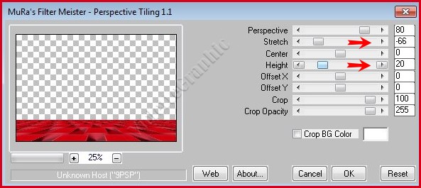 13 - Calques/Dupliquer Effets/Mura's Meister/perspectives Tiling réglages suivants :