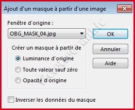 17 - Activer le masque OBG_MASK_04.jpg Calques/Nouveau calque de masque/à partir d'une image/Ajout d'un masque à partir d'une image sélectionner le masque OBG_MASK_04.jpg