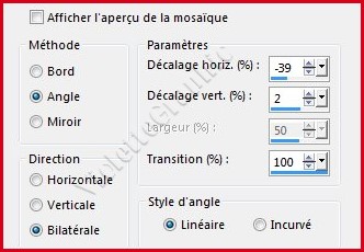 18 - Effets/Effets d'image/Mosaïque sans jointure réglages suivants: